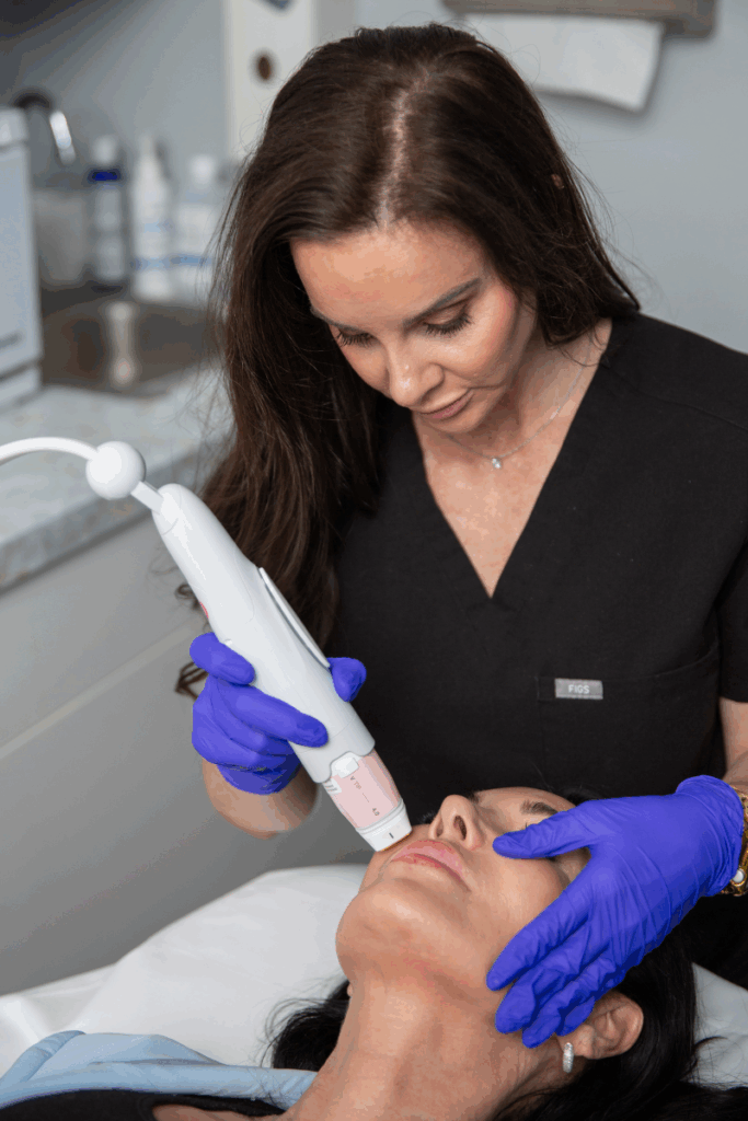 Immediately after your session, the skin may feel slightly warm and appear subtly lifted. There is no redness, flaking, or irritation, so you can apply makeup or return to your regular skincare routine right away.